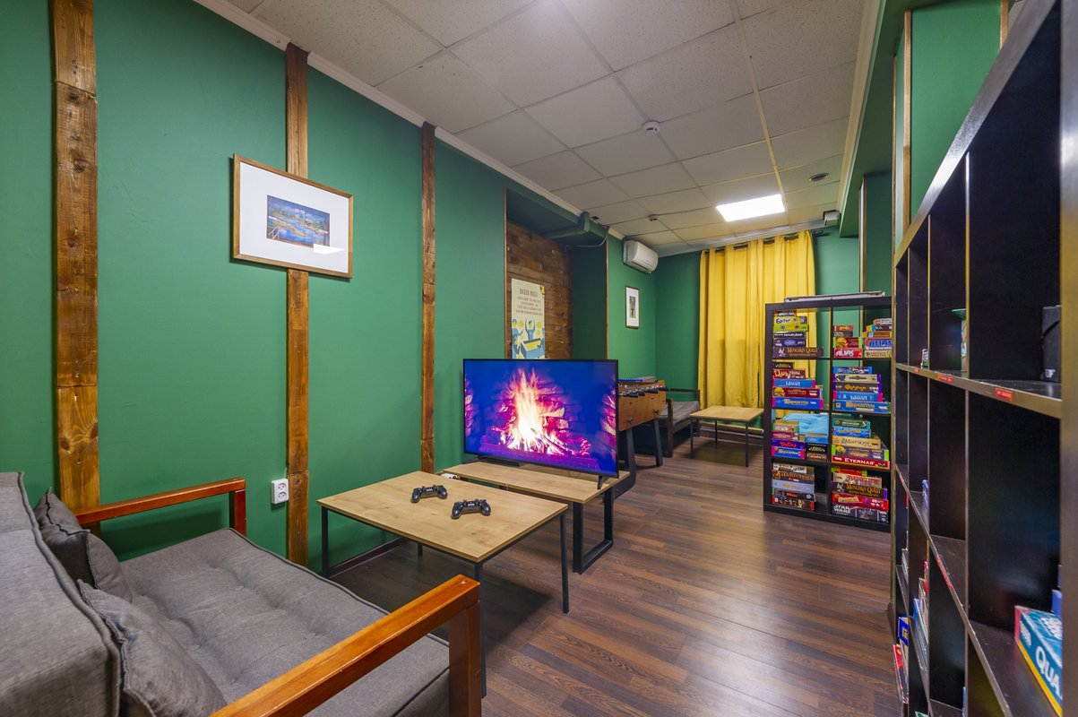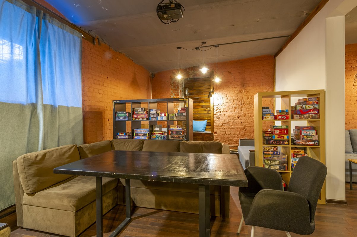В целом отличное место, но есть один минус: нет отдельной комнаты для просмотра фильмов и, когда кто-то смотрит фильм это мешает играть в настолки остальным.